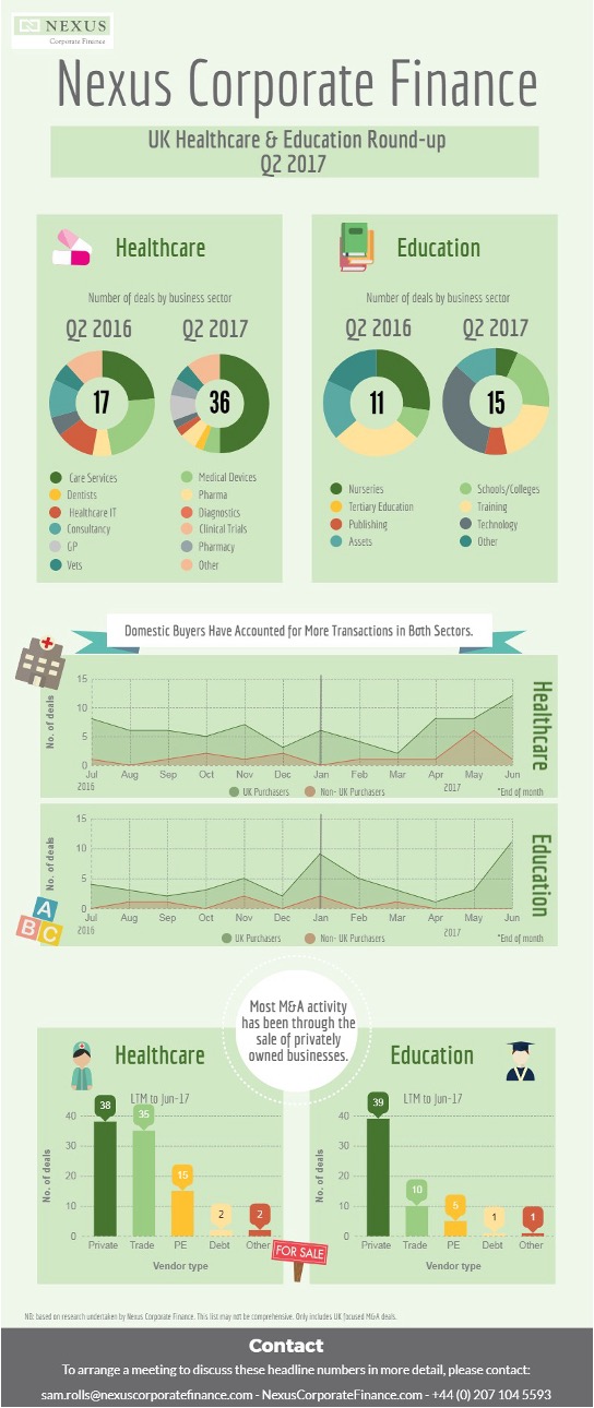 Round-up of UK Healthcare & Education M&A activity in Q2 2017
